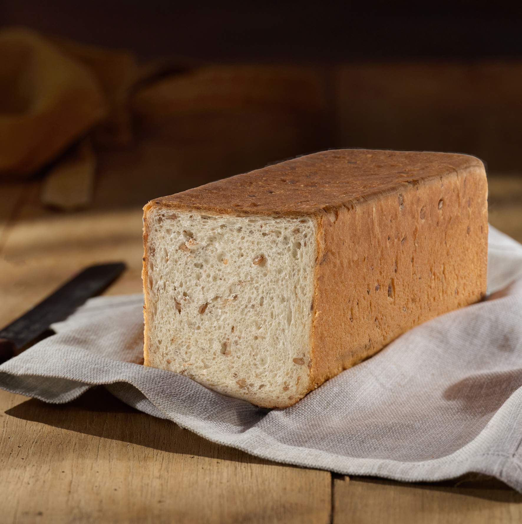 Легкий и питательный хлеб с видимым зерном пшеницы на срезе, богат растительными белками и микроэлементами. Приятный мягкий вкус гармонично сочетается с любыми начинками и соусами.